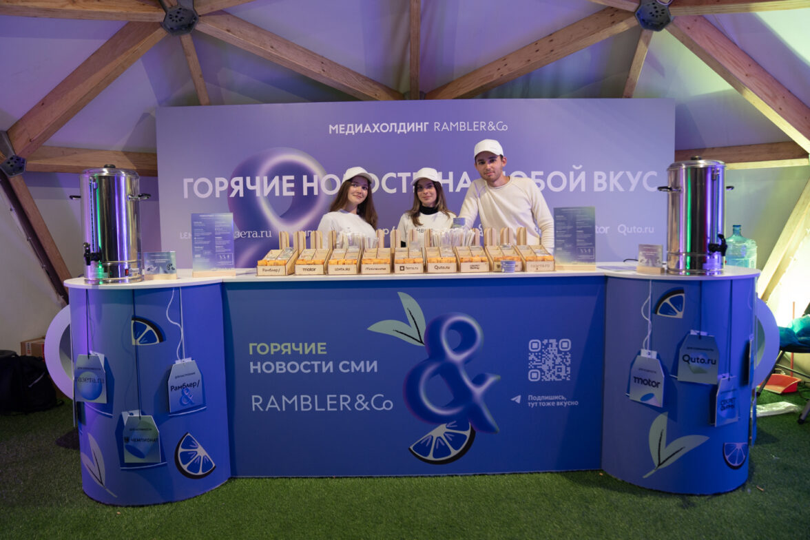 9 и 10 сентября, в День города Москвы, в «Лужниках» работала Медиачайная Rambler&Co для всех гостей праздника и Московского урбанистического форума (МУФ-2023). В креативном поп-ап пространстве с утра и до позднего вечера посетителям рассказывали о медиахолдинге и раздавали авторский чай со вкусом девяти СМИ Rambler&Co — «Ленты.ру», «Газеты.Ru», портала «Рамблер», «Чемпионата», «Секрета фирмы», «Мосленты», Ferra.ru, Motor.ru, Quto.ru. Медиачайная встречала слоганом «Горячие новости на любой вкус!», а провожала съедобными стаканчиками с авторскими напитками и биоразлагаемыми этикетками от чая с семенами луговых цветов.