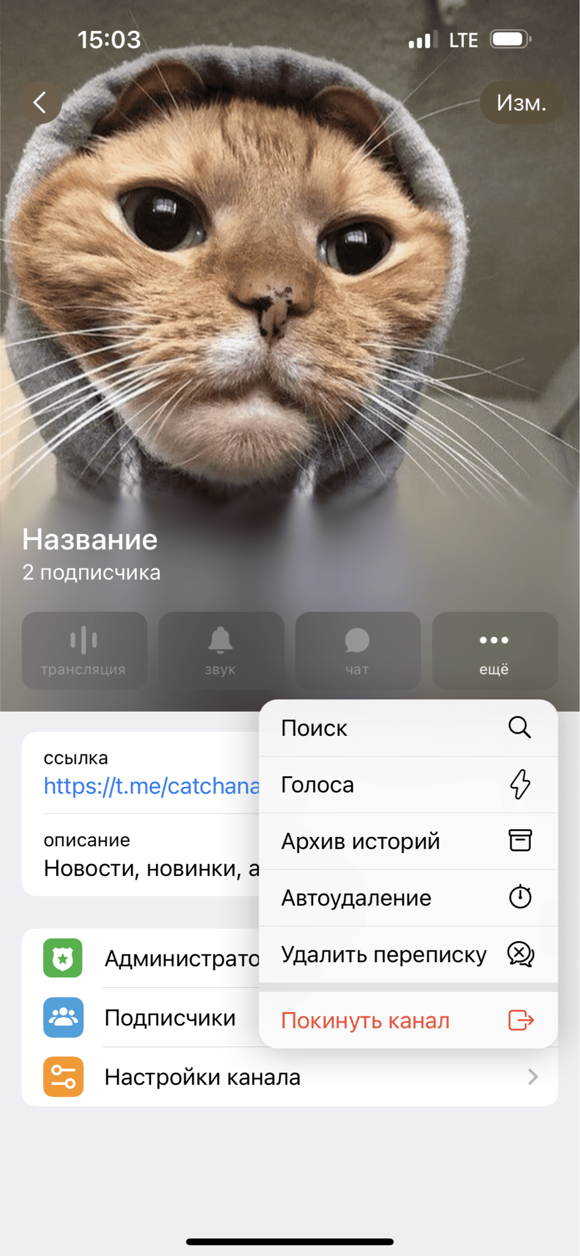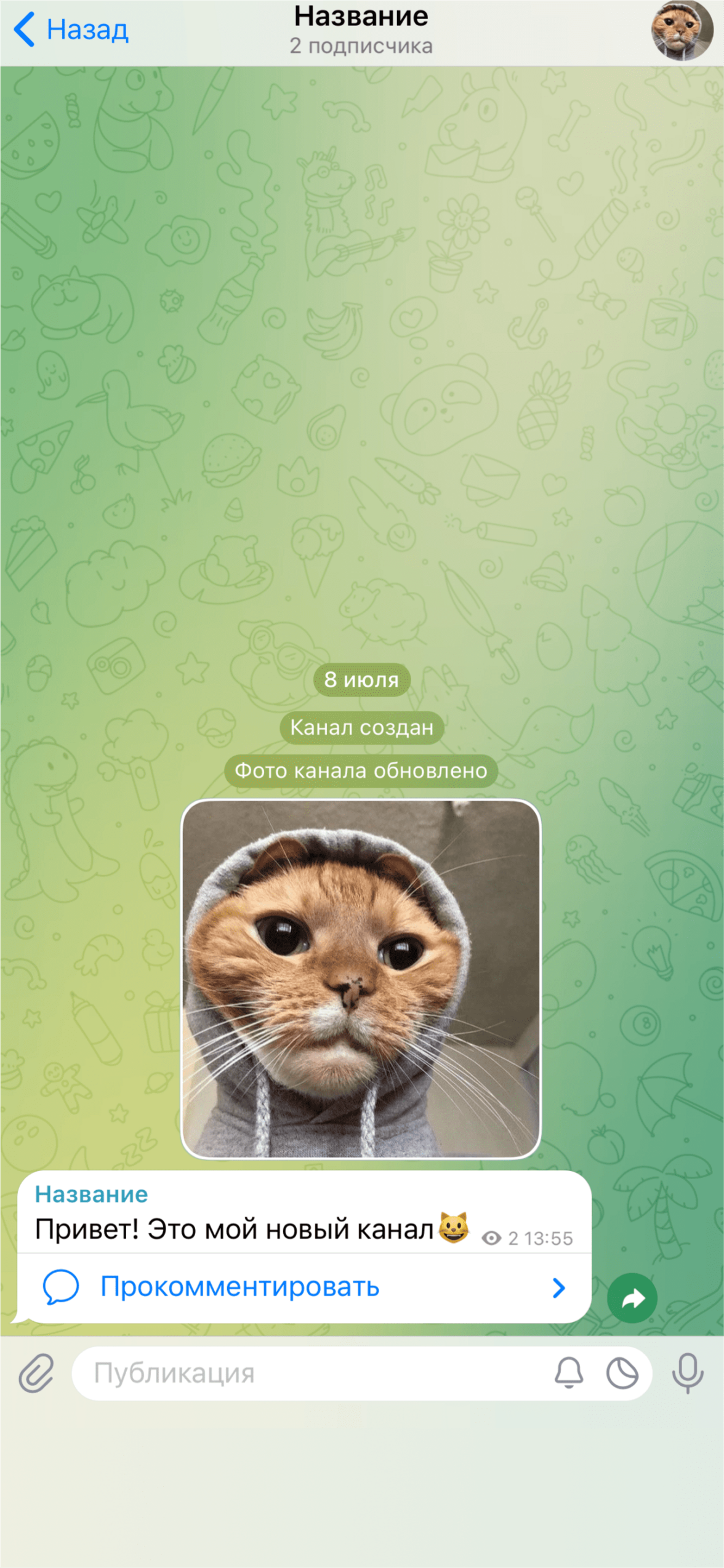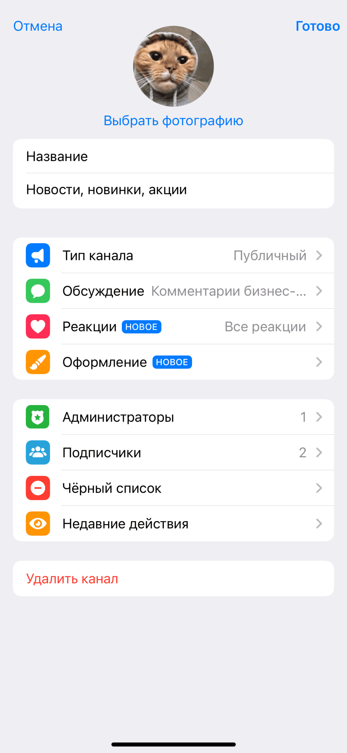 Здесь же добавляем аватар. Это изображение, которое отражает суть канала и выделяется в списке чатов.