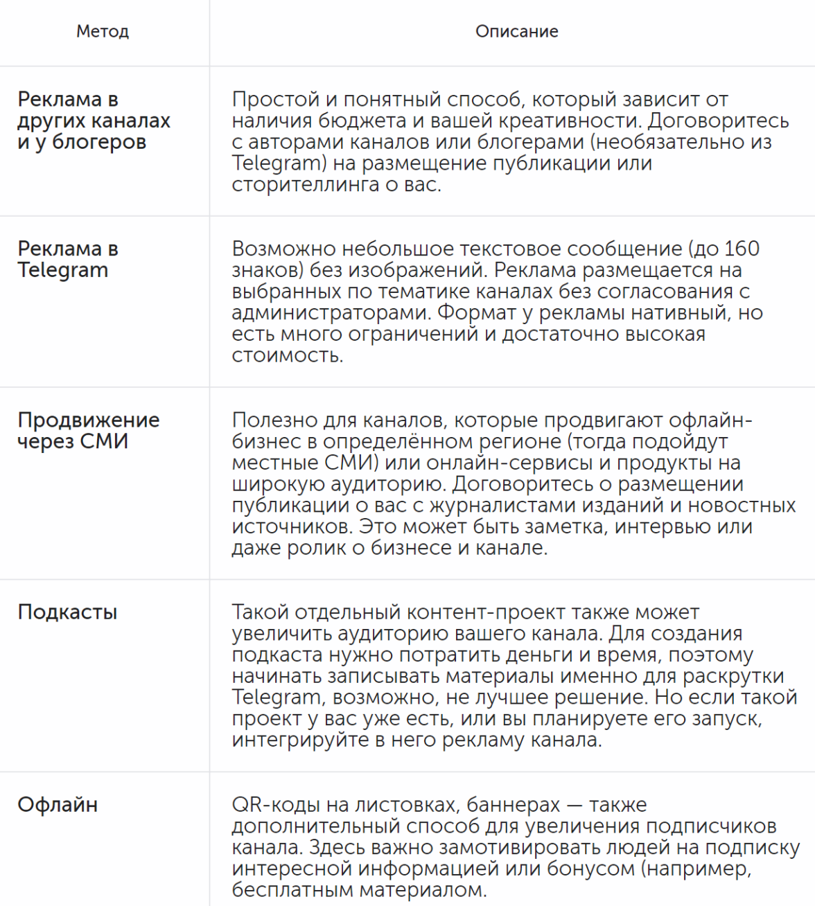 Хотя мессенджеры внедряют в функционал элементы соцсетей: истории, реакции и так далее, у них пока нет ленты публикаций, чтобы аудитория смогла увидеть посты случайно. Поэтому раскрутка телеграм канала — это отдельная задача авторов. Методы разделяют на платные и бесплатные.
