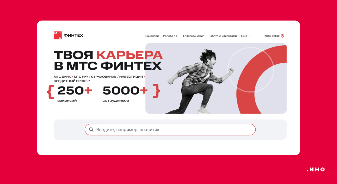 Такой карьерный сайт компания «Иностудио» разработала для МТС Финтех