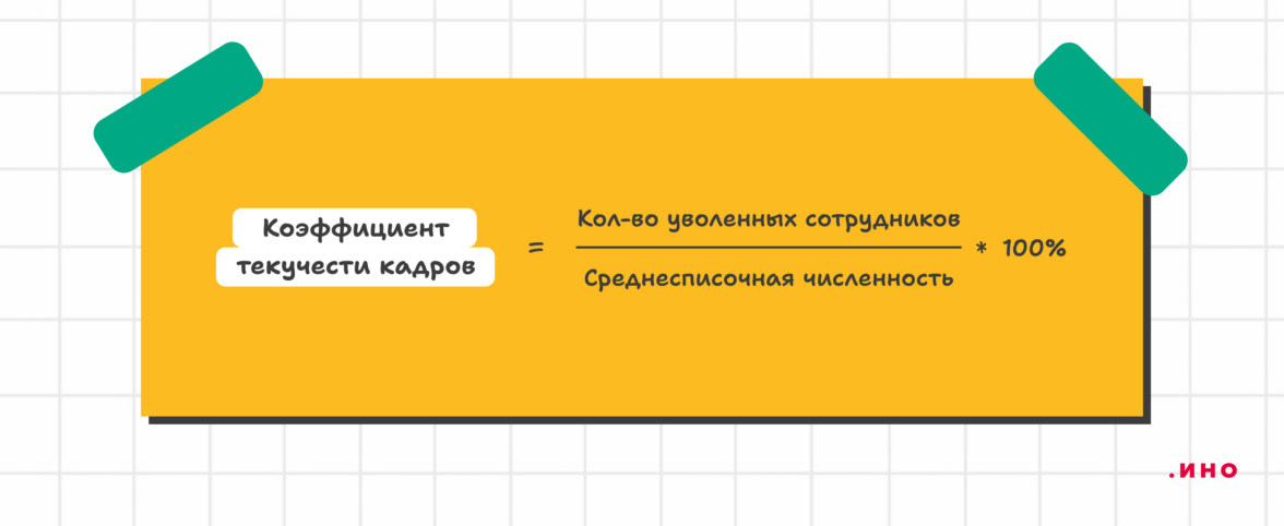 Коэффициент текучести кадров — это отношение количества уволившихся сотрудников к среднесписочной численности персонала. При расчёте учитывают как увольнения по собственному желанию, так и по инициативе работодателя. Чаще всего показатель рассчитывают за год, но в некоторых случаях его можно посчитать за месяц, квартал или полугодие. Общая формула коэффициента текучести выглядит так: