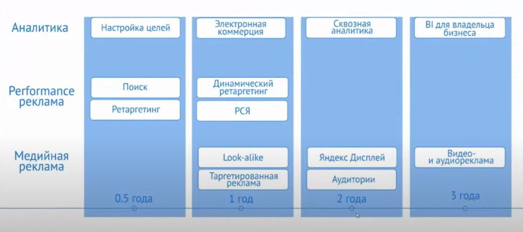 Особенно это актуально для запуска brandformance-рекламы — маркетинга с долгосрочной перспективой и формированием бренда компании. Все, кто привык работать с краткосрочным performance-трафиком и конверсией по последнему клику, должны будут освоить атрибуцию first click, линейную модель и научиться связывать медийные метрики (просмотры, частота показа, post-view конверсии) на общую выручку и количество брендовых запросов.