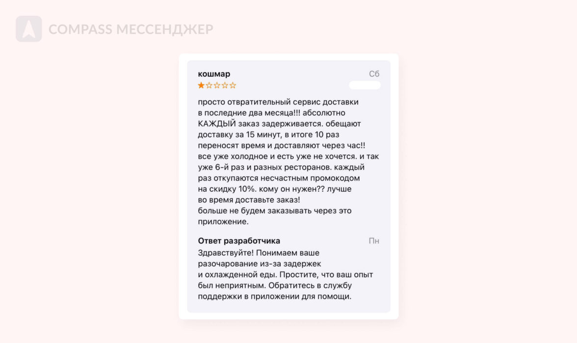 Быстрая реакция важна особенно в негативе. Это снижает вероятность, что человек понесёт проблему дальше в соцсети, чаты или на сторонние площадки. Но даже если отзыв пропустили, отвечать всё равно нужно. Лучше поздно, чем никогда.