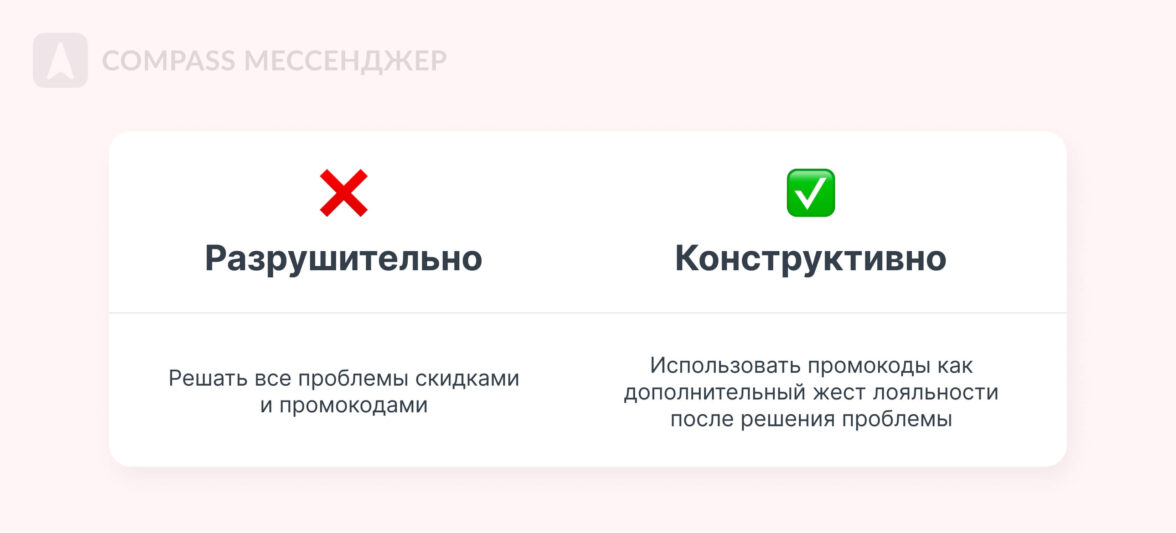 Промокоды — хороший инструмент, но только после того, как вы поняли, что произошло, и предложили реальное решение. Если у товара есть системная проблема, никакая скидка её не заменит.