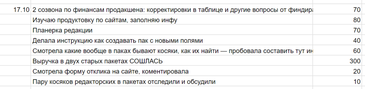 Меня мотивирует система контроля времени, которую мы сделали обязательной для всех редакторов в агентстве. В расписании нужно указать задачу и четкое время, в которое ты ей занимался. На каждую задачу уделяется минимум 10 минут. В итоге видно, кто на какие задачи тратит больше времени и в целом, что успели сделать в течение дня.