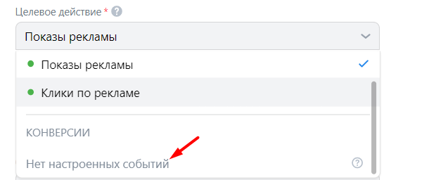После привязки пикселя настраиваем «Целевое действие». Правильный выбор целевого действия повышает эффективность объявлений — система стремится показывать рекламу так, чтобы достигнуть заданного в целях результата.