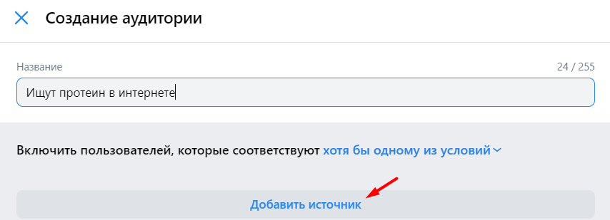 указываем, каких пользователей включить в аудиторию. Возможны такие варианты: пользователи, которые соответствуют всем заданным условиям; хотя бы одному условию; ни одному из условий.