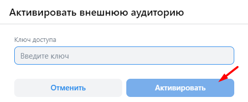 После введения ключа в списке появится новая аудитория с типом «Внешняя». На этом создание внешней аудитории окончено.
