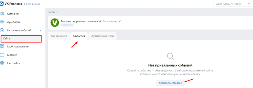 Система предлагает установить пиксель VK для учета конверсионных событий. Достаточно кликнуть по кнопке «Добавить» — указанному сайту автоматически будет присвоен пиксель.