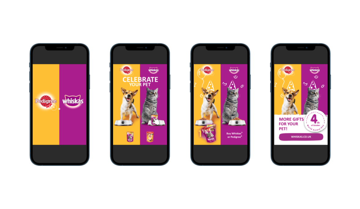 Международные бренды кормов Whiskas и Pedigree решили разместить рекламу на нашей мобильной программатик платформе. Целью было анонсирование акции ко «Дню животных», привлечение юзеров на сайт и стимулирование пользователей к регистрации и участию в розыгрыше призов.