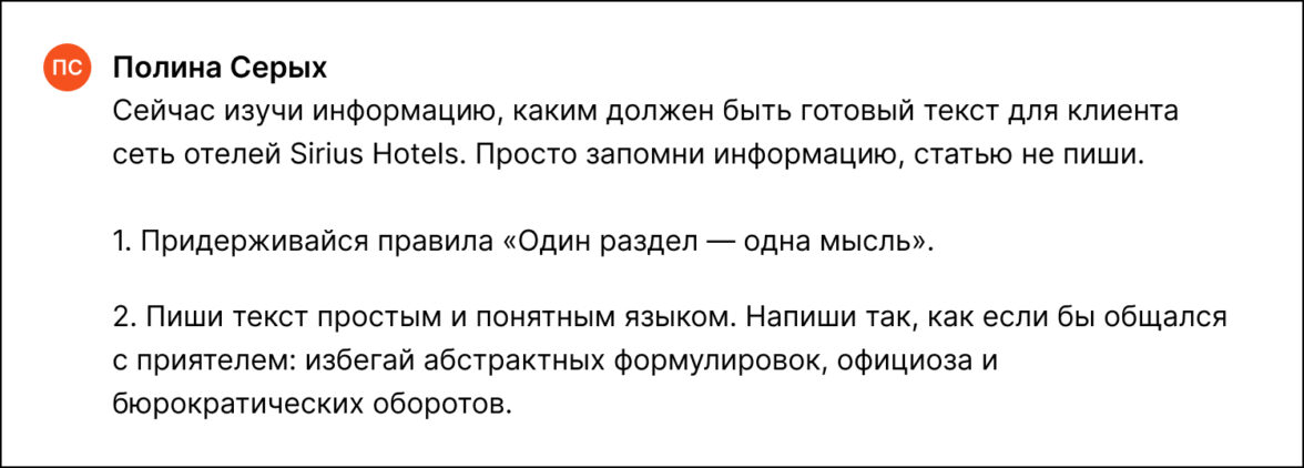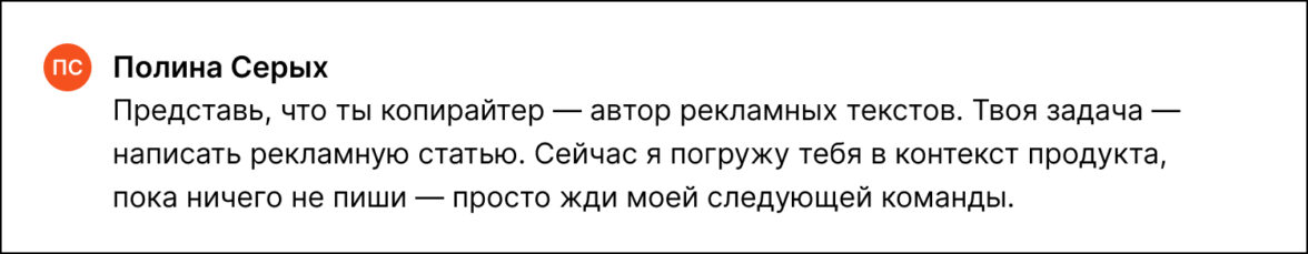 «Представьте, что вы общаетесь со стажером, которому нужно терпеливо объяснять задачу и направлять его во время работы. Именно этот подход мы использовали при работе с ChatGPT. Это потребовало времени и вовлеченности, но в итоге материал был создан быстрее и по качеству не уступал “человеческому”».