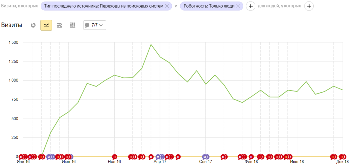 Сравнение трафика на момент прихода сайта на продвижение (2016 год) и трафика сегодня: