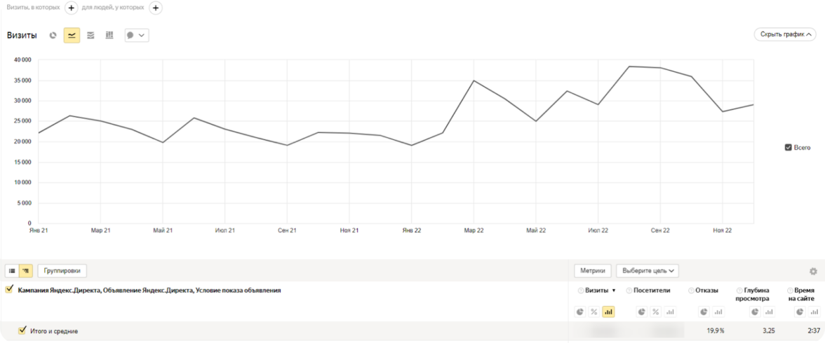В 2022 году, несмотря на сложные условия, мы смогли увеличить трафик и количество заявок для клиента. Наиболее эффективными инструментами в этот период стали: