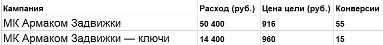 Помимо этого, мы сменили формат работы с МК: в качестве целей были не только «лиды», но и редкие «заявки с сайта». Благодаря вторым, мы получили небольшое количество лидов по 0 рублей.
