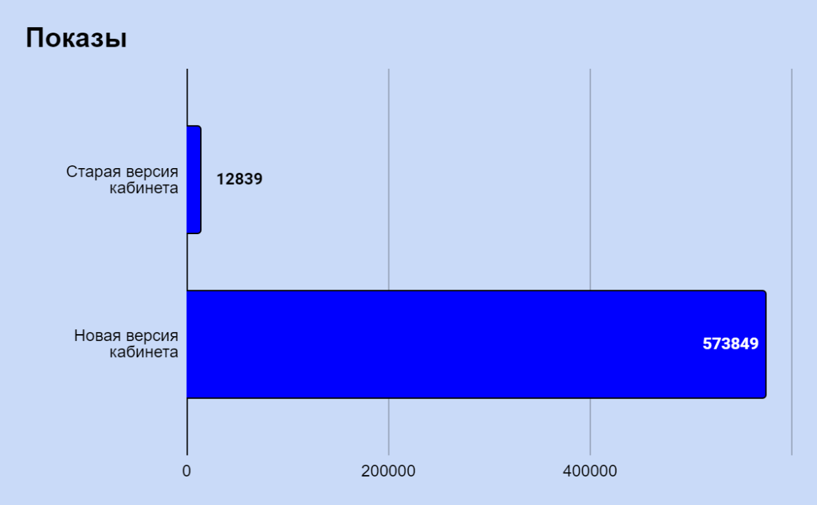 Увеличили количество показов на 97% — с 128 839 до 573 849.