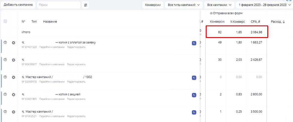 Что получили после запуска кампаний