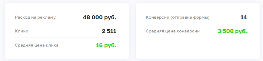 Обычно реклама работает быстро после запуска и в течение недели можно получить первые результаты. Но в случае со специфичной тематикой, результат придётся ждать месяц, а то и больше. Но за счёт тестирования разных гипотез и непрерывной работы специалиста можно выйти на стабильный поток заявок по цене, которая вас устроит и будет окупаться.