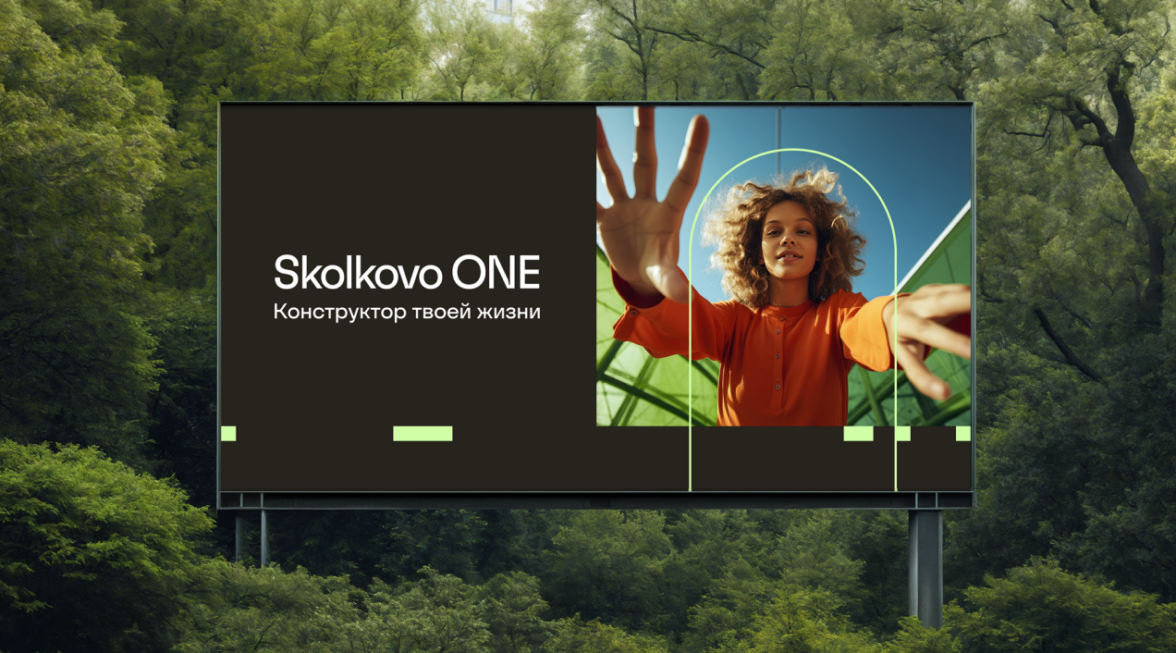 Брендинг построили на взаимодействии двух основных элементов: арки и пикселя. Арка отражает узнаваемые элементы архитектуры «Skolkovo One» и отсылает к классическим визуальным решениям. Пиксель показывает диджитальность среды обитания современного человека и символизирует связь проекта с Инновационным центром «Сколково» и IT-технологиями.