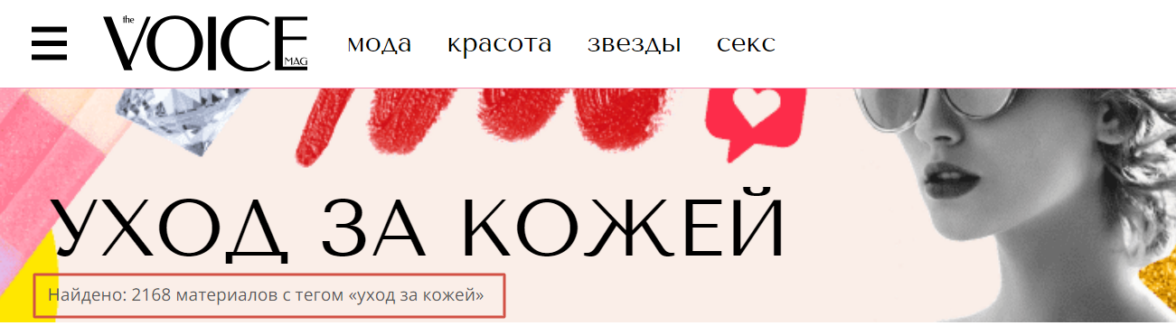 Страница по тегу «Уход за кожей» на сайте сетевого издания The Voicemag