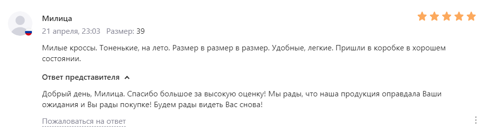 Благодарить покупателей за хорошие отзывы и приглашать ознакомиться с ассортиментом магазина.