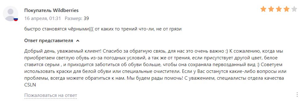 Отвечать на негативные отзывы и выяснять причину, почему не понравился товар. Иногда дело вовсе не в низком качестве товара, а в проблемах логистики самого маркетплейса. Часто снижаются оценки из-за того, что товар был не вовремя доставлен со склада или на складе сделали ошибку и отправили не тот товар.