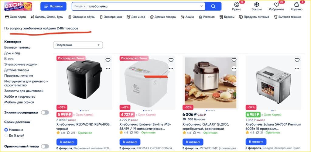 2487 товаров в выдаче Озона по запросу «хлебопечка»