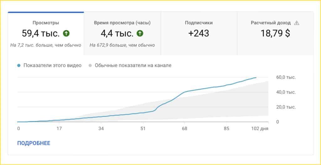 Набрал больше просмотров, так как в топ удалось залететь по большему количеству запросов. Ролик нигде дополнительно не промотировали.