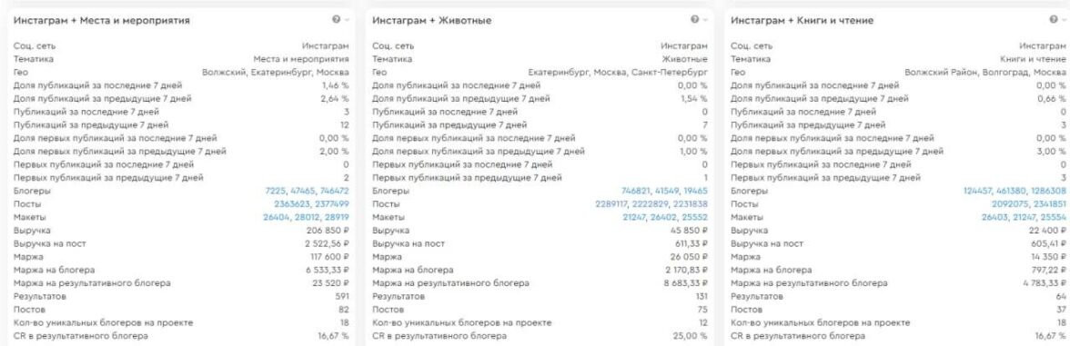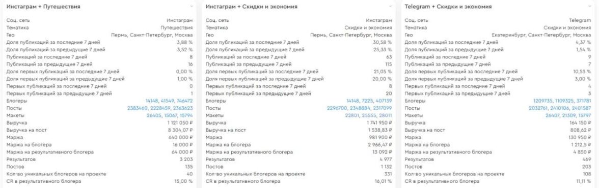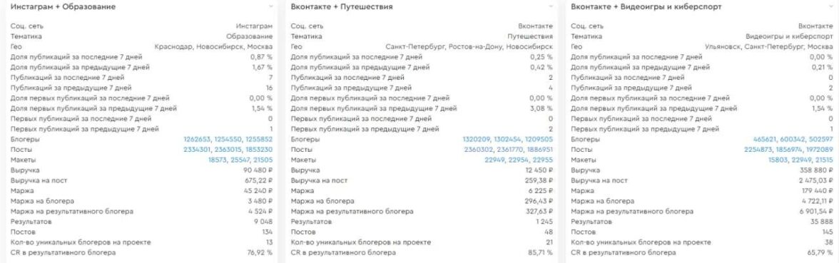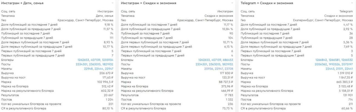 Самый крупный блогер был с 165 тысячами подписчиков, мидл — с 50 тысячами. У остальных в среднем было по 70–80 тысяч подписчиков.