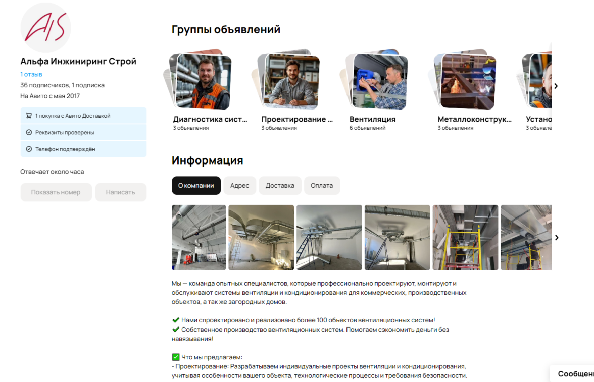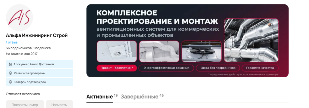 Поэтому вести трафик на сырой сайт мы были не готовы. Зато были готовы предложить альтернативу. Изучив бизнес (клиент занимается проектированием и монтажом вентиляционных систем для коммерческих и промышленных предприятий) и аудиторию клиента, пришли к решению, что для повышения продаж оптимально подойдёт продвижение на Авито, потому что: