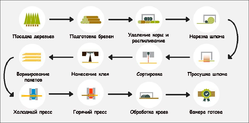 Этапы производства фанеры. Инфографика из блога Лесопромышленного комбината АО РЛК