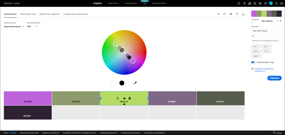 Гармония цветов. Это базовое понятие колористики. Одни оттенки лучше сочетаются, другие хуже. Отсутствие гармонии вызывает дискомфорт и мешает воспринимать информацию. Необходимо учитывать индивидуальные и физиологические особенности. Есть достаточно многочисленные группы людей, которых слепит белый фон или которым, наоборот, неприятна выворотка (светлый шрифт на темном фоне). Также существуют патологии, которые нарушают цветовое восприятие. Следует избегать слишком ярких и «кислотных» оттенков. Сформировать подходящую палитру можно при помощи цветового круга или специальных онлайн-сервисов, например Adobe Color.