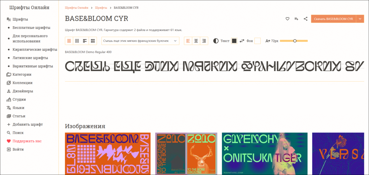 Сервис Шрифты Онлайн. Придется приложить немалые усилия, чтобы разобрать надпись с символами из набора BASE&BLOOM CYR