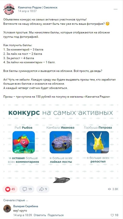 А вот пост про «вашу любимую рыбку» собирает прям нормас. И пост с живыми настоящими фотографиями тоже:
