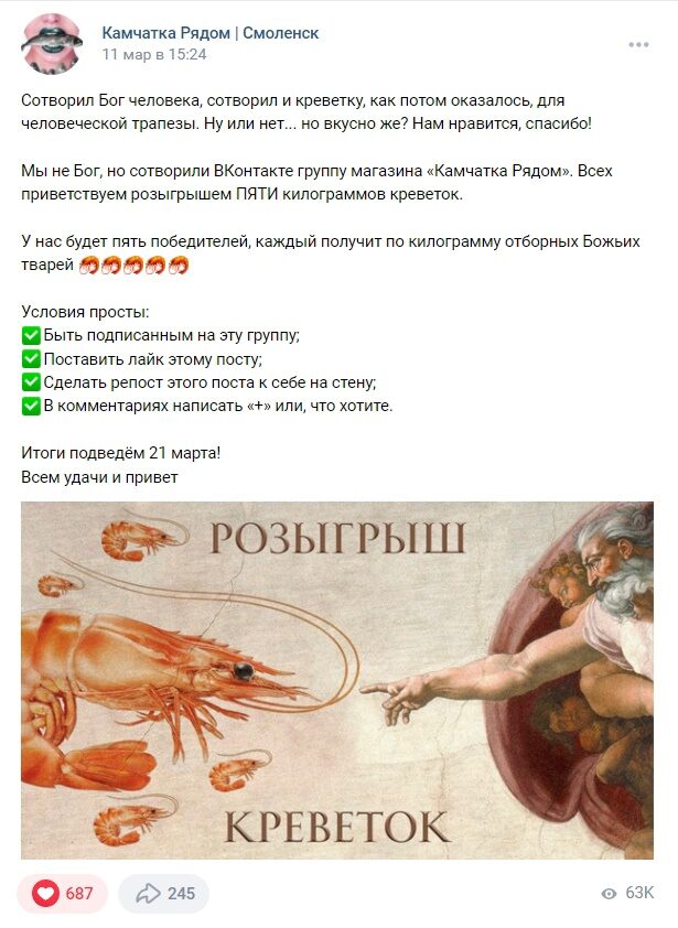 — Сначала мы запустили просто розыгрыш в группе, без всякого продвижения. Вирально полетело махом.
