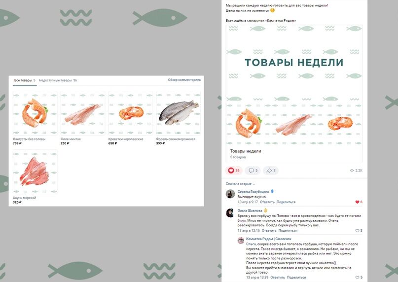 Чуть позже мы запустили товары в вк. Мы их меняем каждую неделю и запускаем в таргет (это именно акционные товары на неделю).