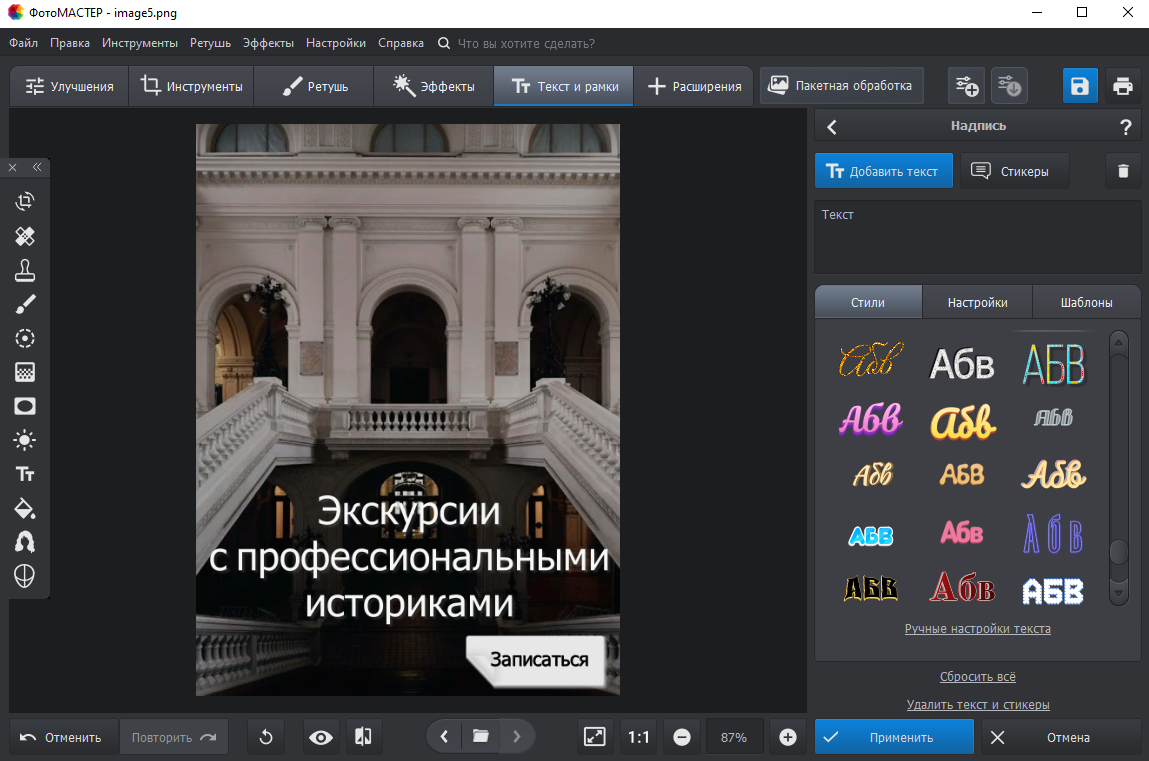 ФотоМАСТЕР — российский редактор. У него понятный интерфейс, во всех функциях можно разобраться на ходу. Есть инструмент для автоматического удаления фона, что особенно полезно при создании иллюстраций для баннеров.