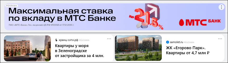 Блоки в скроллящихся лентах дополняют контент сайта и их сложно пропустить. Цена в этом случае может быть самой низкой, но и время демонстрации будет небольшим. Пользователь прочитает абзац, промотает страницу ниже, и объявление скроется из виду.