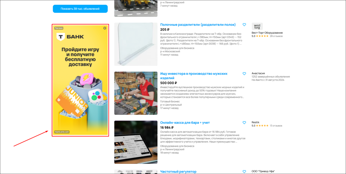 Пример бокового баннера на Avito