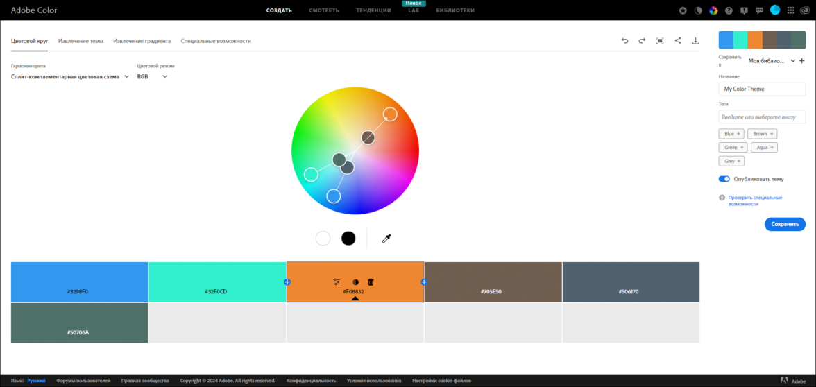 Интерфейс Adobe Color
