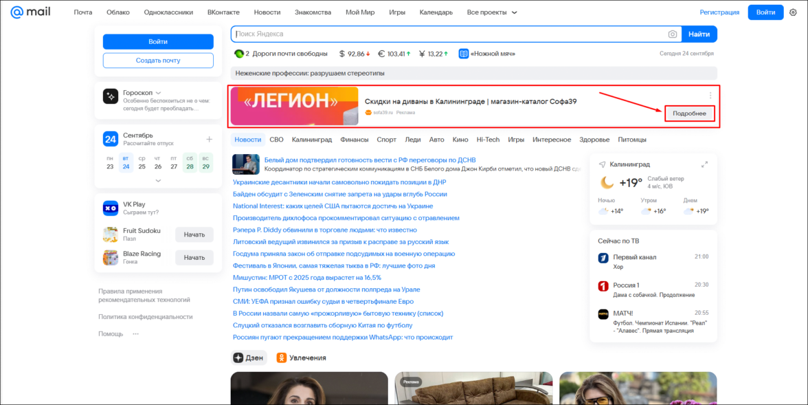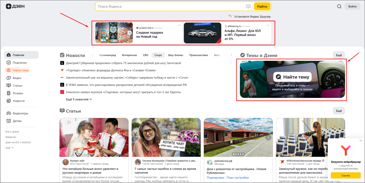 Примеры баннерной рекламы на главной странице Дзена