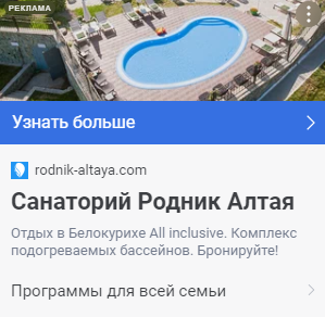 В основном в нише все конкуренты борются за поиск. Санатории чаще всего запускаются по брендовой семантике. Известность бренда приносит им больше всего клиентов. Иногда используют запросы с названием конкурентов, а также геозапросы, типа «отдых в белокурихе», «санаторий на алтае». Кампании в сетях преимущественно используют для формирования устойчивых ассоциаций с брендом или создания первичного спроса. Получить заявки или брони с РСЯ довольно сложно. Этот тип кампаний чаще всего выступает в качестве медийного инструмента.