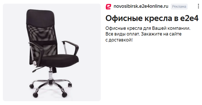 В нашем примере задачей РСЯ было продвинуть категории офисных кресел для продажи юрлицам.