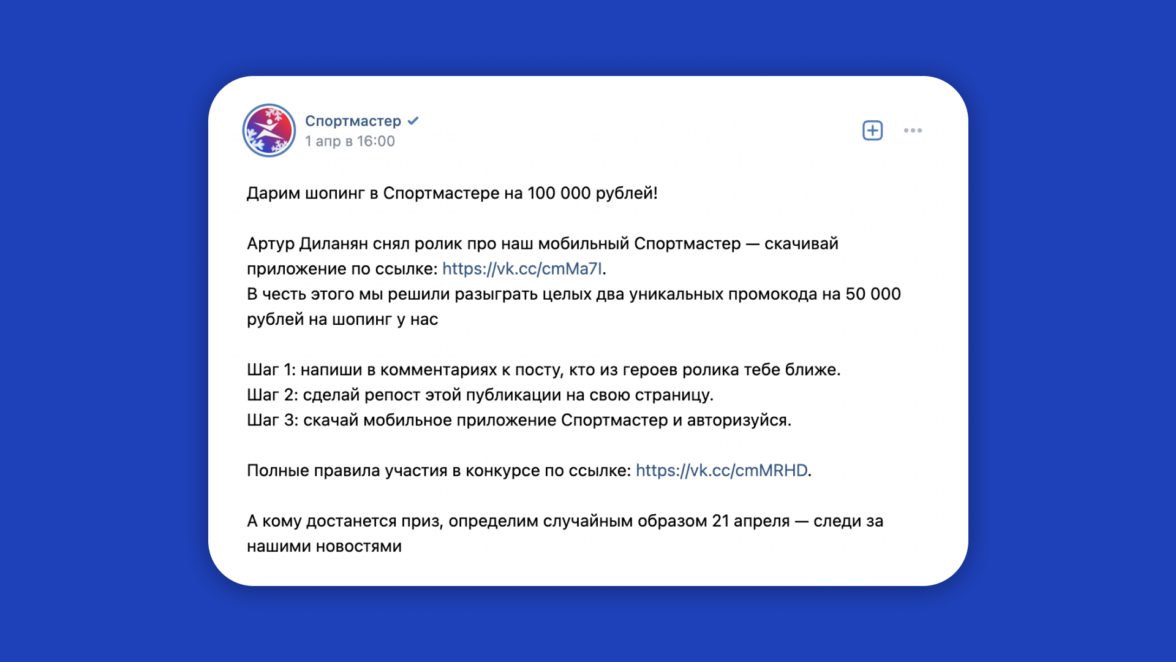 конкурса в ВК-клипах с его роликом, а также трёхдневной flash-sale с промокодом на скидку;