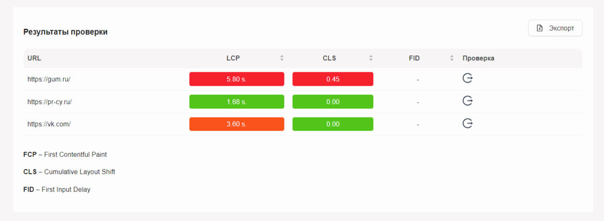 Интерфейс сервиса для проверки Core Web Vitals