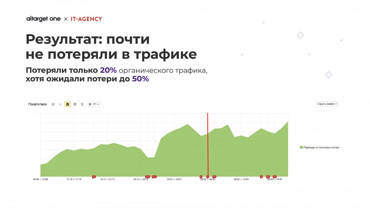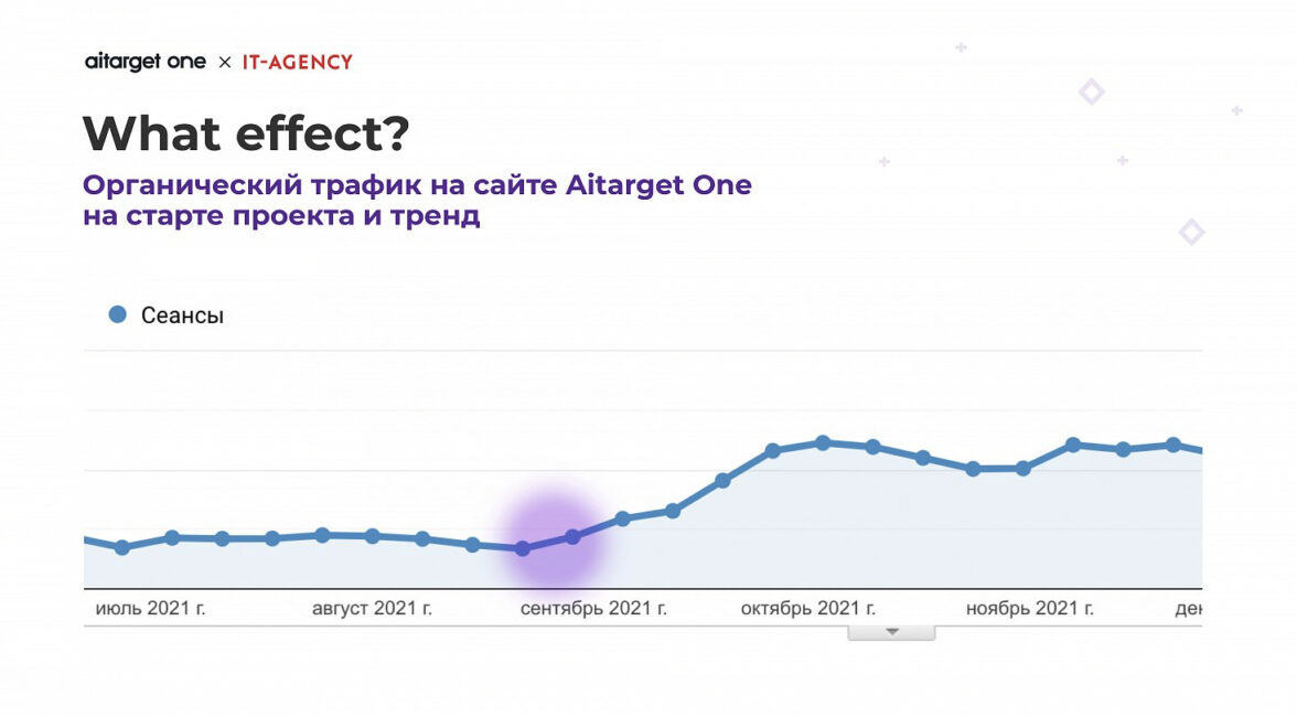 Проект с IT-Agency запустили в сентябре. График показывает, что с этого времени трафик на сайт начал расти