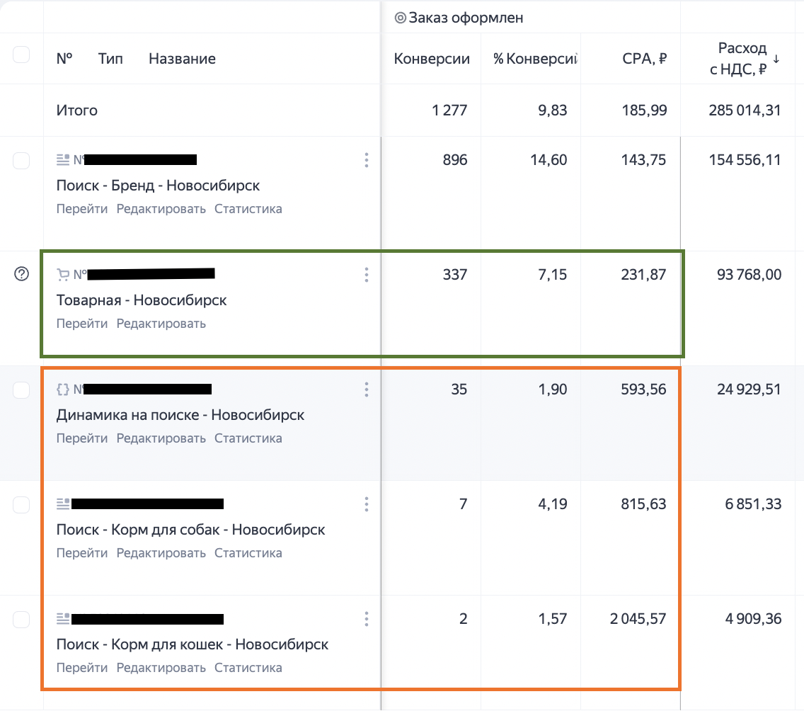 Товарная кампания со старта начала давать стабильный результат и приносила конверсии по более низкой цене, чем мы задали в параметрах кампании.