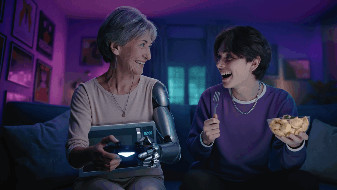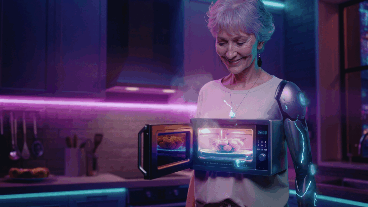 Даже в мире нейробустов и робо-рук бабушка всё равно накормит. А ИИ просто помогает ей сделать это чуть быстрее — и эффектнее.