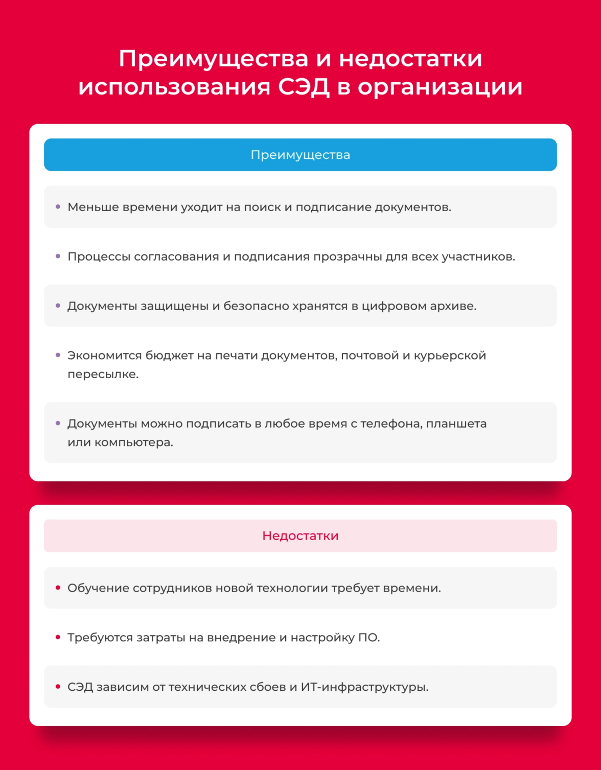 Преимущества и недостатки использования СЭД в организации