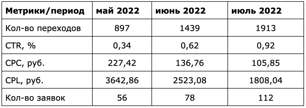 Вот результаты кампании за период май — июль 2022 года: