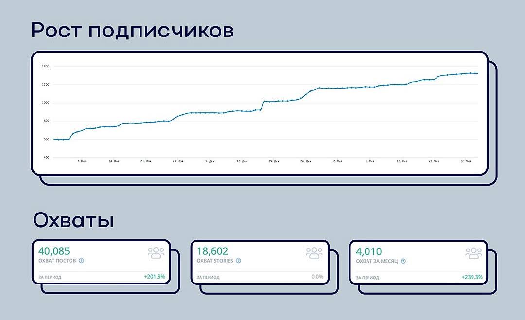 За три месяца сделали более 30 посевов в паблики и у блогеров и суммарно получили несколько тысяч охвата.